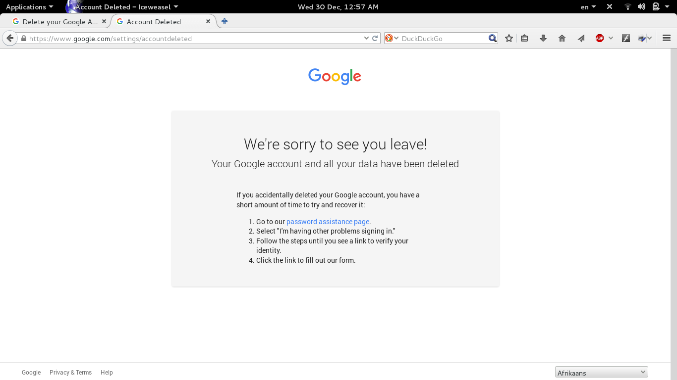 | Deleted Google Account | 0 | 30 Dec 2015 | I've finally deleted my google account. It was a long time coming. |