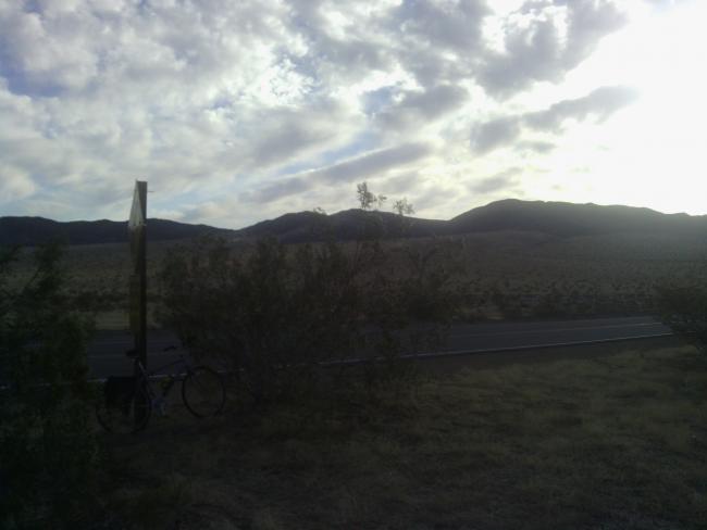 Despite starting a little later than yesterday, I reached Twenty-nine Palms at about 4:00 and have been resting for the last hour. I'm debating whether I should get to bed super early, or head out and try to get a head start on tomorrow's ~150 km stretch of desert.
