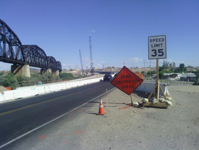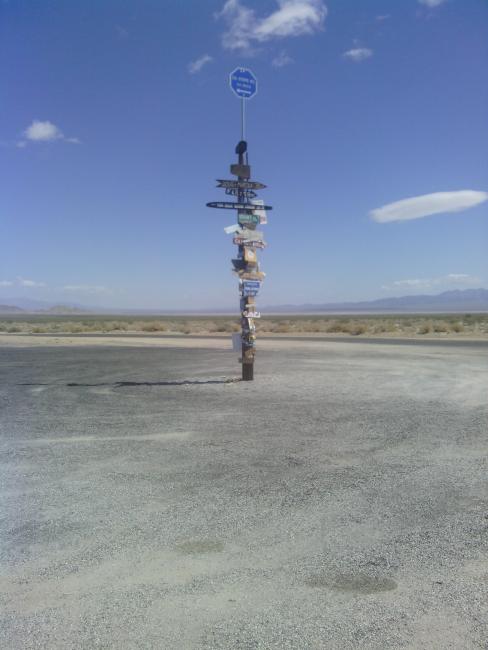 Riding out of town the road was slightly downhill and the wind was at my back. It felt great, and I hardly had to pedal. Naturally, I hoped that would last all day. After about 10 km of easy coasting, I turned a corner to an uphill, and at the top found a gate and guard shack. It turned out to be tribal land, and I wasn't allowed in. I told the guard I didn't know how else to go hoping he would let me pass through, but instead he gave me alternate directions. His directions involved getting on the interstate for a "little bit", and then carrying my bike through a cut in the fence to a frontage road which he assured me was paved. Naturally I was skeptical. But lacking a better option I decided to follow his advice. It turned out I was only on the interstate for about 200m, and I did manage to spot the cut in the fence. His route was probably faster and flatter than my original anyway. The frontage road was technically paved, but hadn't been maintained in years, so I went slow to avoid potholes. About two hours of cruising with the wind later I stopped at Ruby's diner for brunch.
