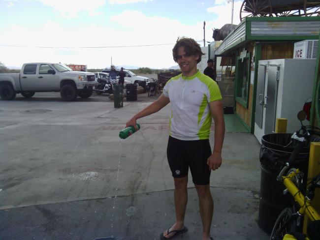 When I finally came over the last hill with the wind howling in my face and saw a gas station, I felt some relief. I bought a huge gatorade, chugged it, laid down on the sidewalk and started calling hotels. I didn't quite make it to the campground in Banning, but I did ride 168km today. Although I was thinking of reasons to quit this trip, a gatorade and a rest stop had encouraged me to press on. As my friend Karl Hein says, "if you can make it one day, you can make it two". And I made it one day!