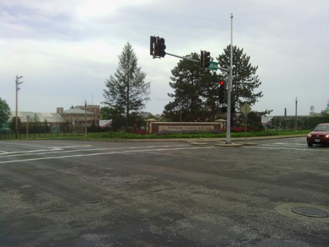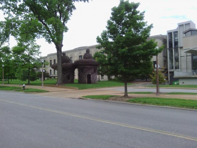 When I finally got into St. Louis I rode through Washington University, then stopped at a bike shop to get my front wheel trued and drive train oiled. I figured I'd need it after the rain today.