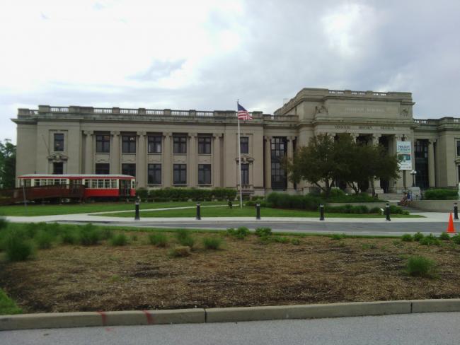 As I neared the city, the route took me on a bike trail. At first I was hesitant about riding an unpaved trail since I've had so much wheel trouble already. But eventually it turned paved, and wound through some very scenic woods. The weirdest thing about the trail was that it followed along a tiny set of railroad tracks. I have no idea what they were for.