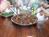I went with Brian and some of his friends from his QQ group to the huangpu port. There are a bunch of little shops, restaurants, and fruit stands. There are also a lot of fields, and it feels like you're in the traditional Chinese countryside rather than a few kilometers outside of Guangzhou. The restaurant where we had lunch in located behind several fields and banana farms, and we got to see the guy go get our goose from the field before he cooked it.