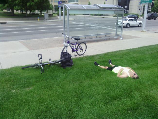 I must say, this was a great experience. The picture of me on the ground doesn't even do justice to the way I felt. On one end of the spectrum was the fact that I was able to ride with Josh for the entire day trip (albeit probably his shortest day of the trip) and on the other end feeling like I would never stand up again as my legs hurt so much. I admire Josh's ability to endure through day after day of various obstacles (physical, mental, emotional) to achieve his goal. What an awesome feeling.