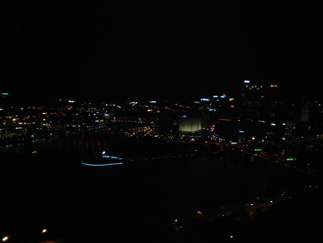 I haven't seen Aaron in a few years, so it was awesome to meet up with him again. The two of us went out to fat head's saloon for dinner and to watch the penguins hockey game. I ordered the quadruple bypass burger, and it was totally delicious. Afterward he showed me a great view of the city and the three rivers from the Duquesne incline. This was a fun night.