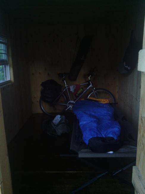 When I got to downtown Stafford Springs I had a quick milkshake before heading on to my campground. I've had some good and bad campgrounds on this trip, but I think this one, my last one, is the best. Which says a lot because some of the campgrounds in Missouri were pretty awesome. The owner knocked the price from $30 to $20 for me, let me set up in a cabin and use his cot for free. And even let me ride along on his trip to the grocery store.