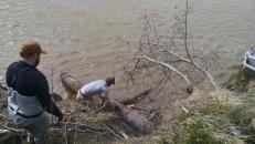 Wood is really valuable in the bush both for heating and construction. Each spring when the river breaks the ice moves out in big chunks and takes down some trees with it. Conveniently the ice (usually) strips the trees of limbs and leaves them on the banks of the river. Although some of the logs are higher up the bank and still have some branches. So we took the opportunity to boat up river, collect the logs, build them into a raft, and then push it back to Bethel to use as firewood for the winter.