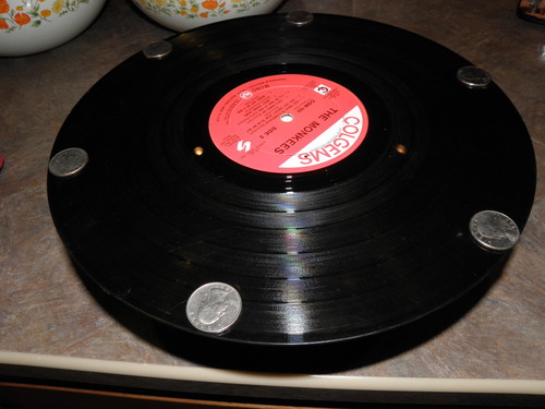 Placing coins on the record helps control exactly where the vinyl folds. More coins will create more folds. (This doesn't always work perfectly, but sometimes does, so be patient)