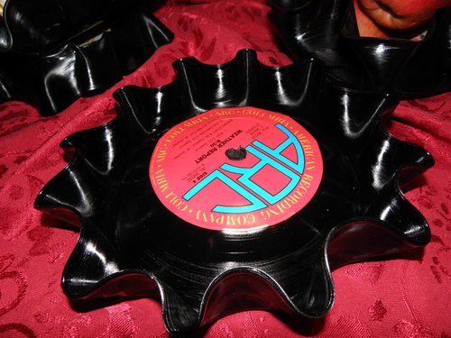 Another method is to put the bowl right side up, and allow the record to melt down into the interior of the bowl. Try both methods and see which results you like best, or try some of the techniques discussed on the next page.