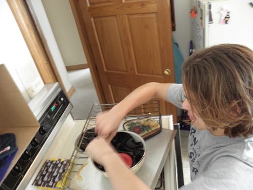 Molding a bowl while it's still in the oven.